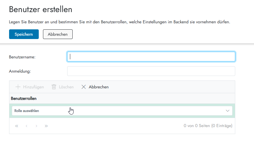 - Nach der Bestätigung kann der Administrator dem Benutzer über Administration → Benutzer und Rechte → Benutzer eine Rolle zuweisen.