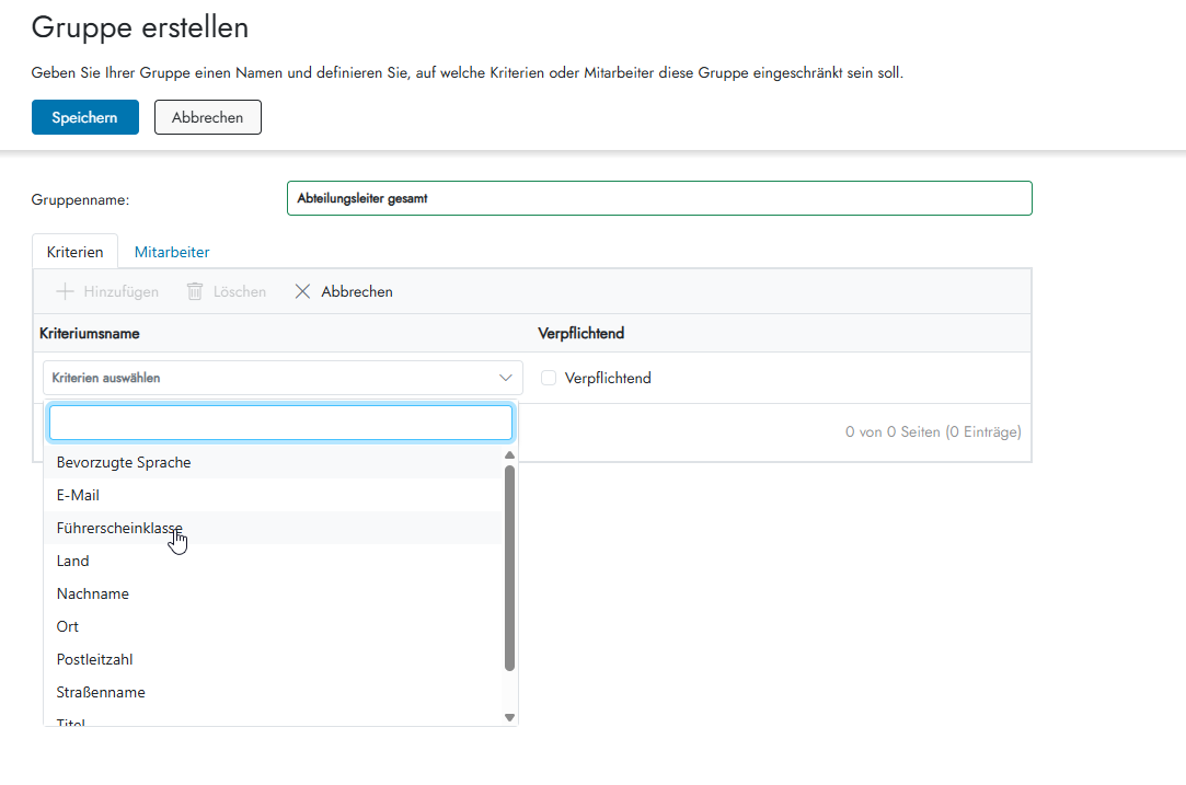 - Klicken Sie auf Speichern, um die neue Gruppe anzulegen.